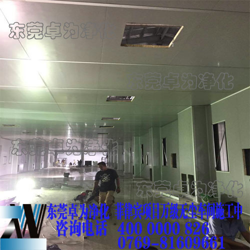 东莞卓为净化机电设备有限公司也在大力加速融入到国际大环境中!此次我们合作的是菲律宾万级无尘车间工程现场图: